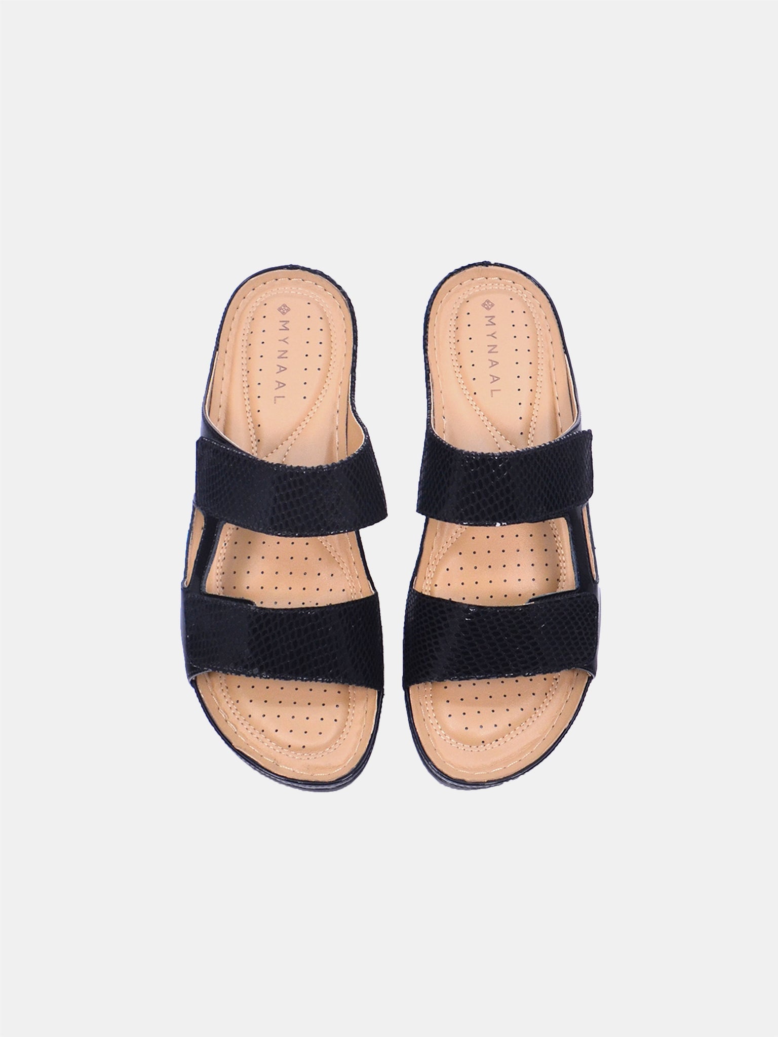 The Fayza wedge sandal blends metallic textures with supportive double straps for a stylish, secure fit. Its cushioned insole and lightweight sole ensure lasting comfort for any occasion.
