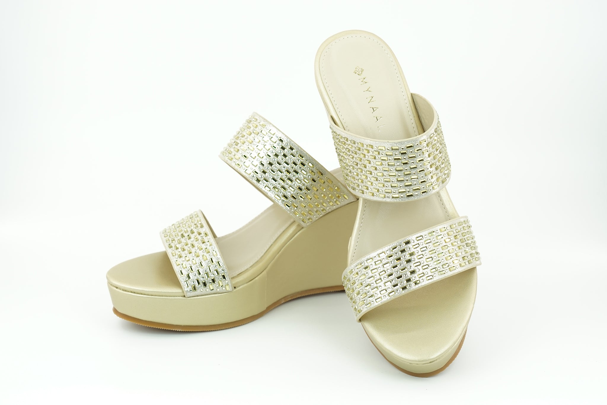 Wide straps bring a bold, structured look to this open sandal. A sculpted wedge sole anchors the design, adding height while keeping the profile balanced.