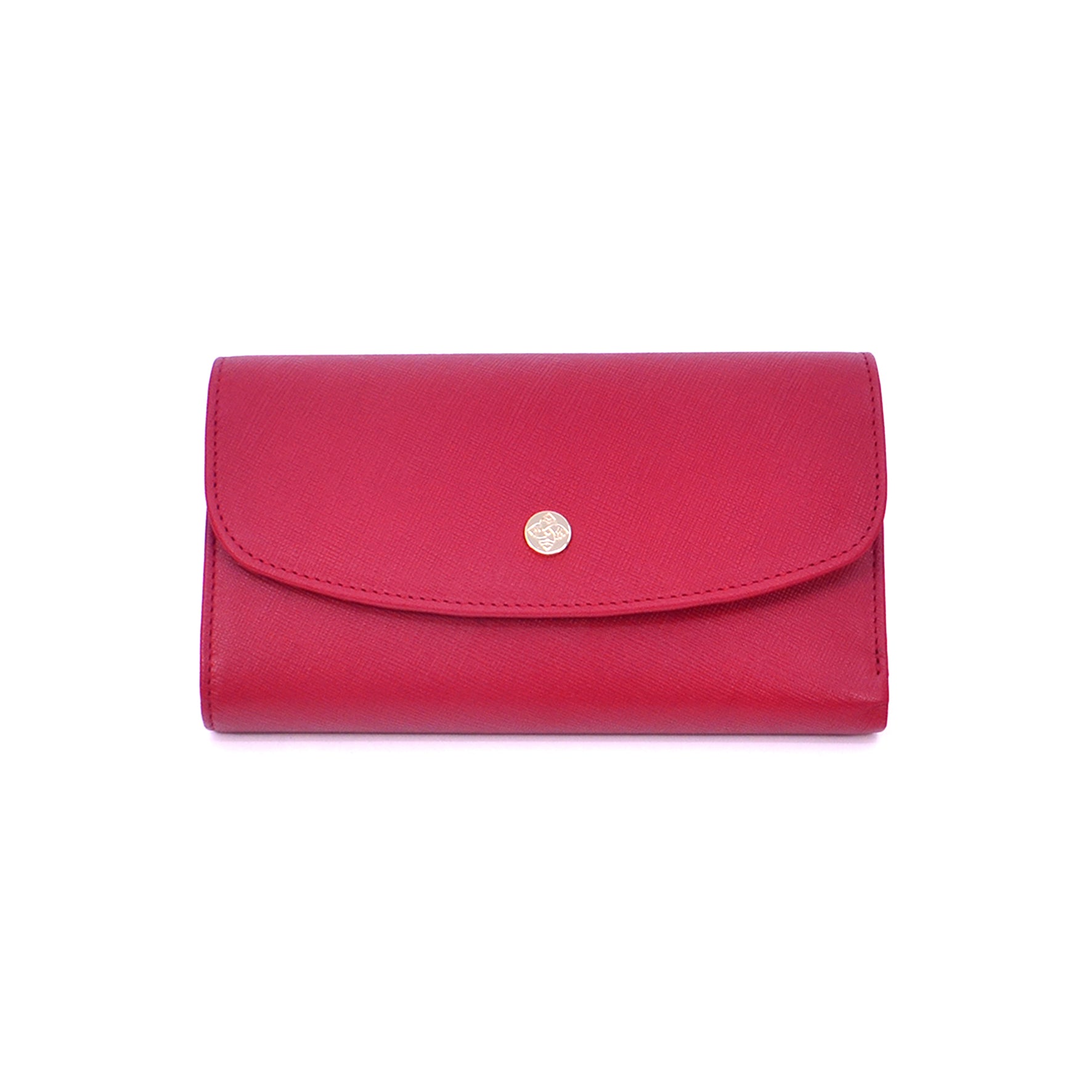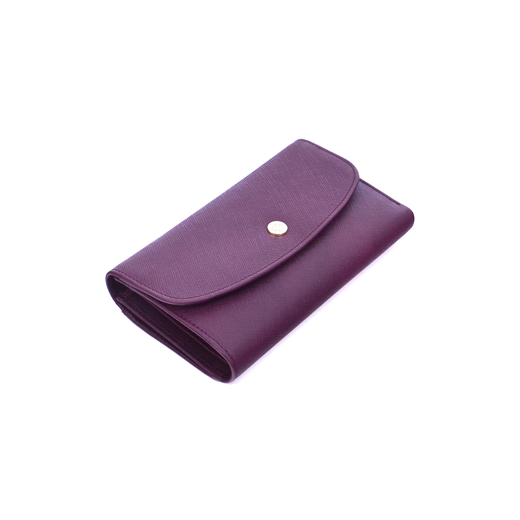 A structured leather wallet detailed with a smooth flap and snap closure. The interior reveals multiple card slots, compartments, and a zip pocket for coins.