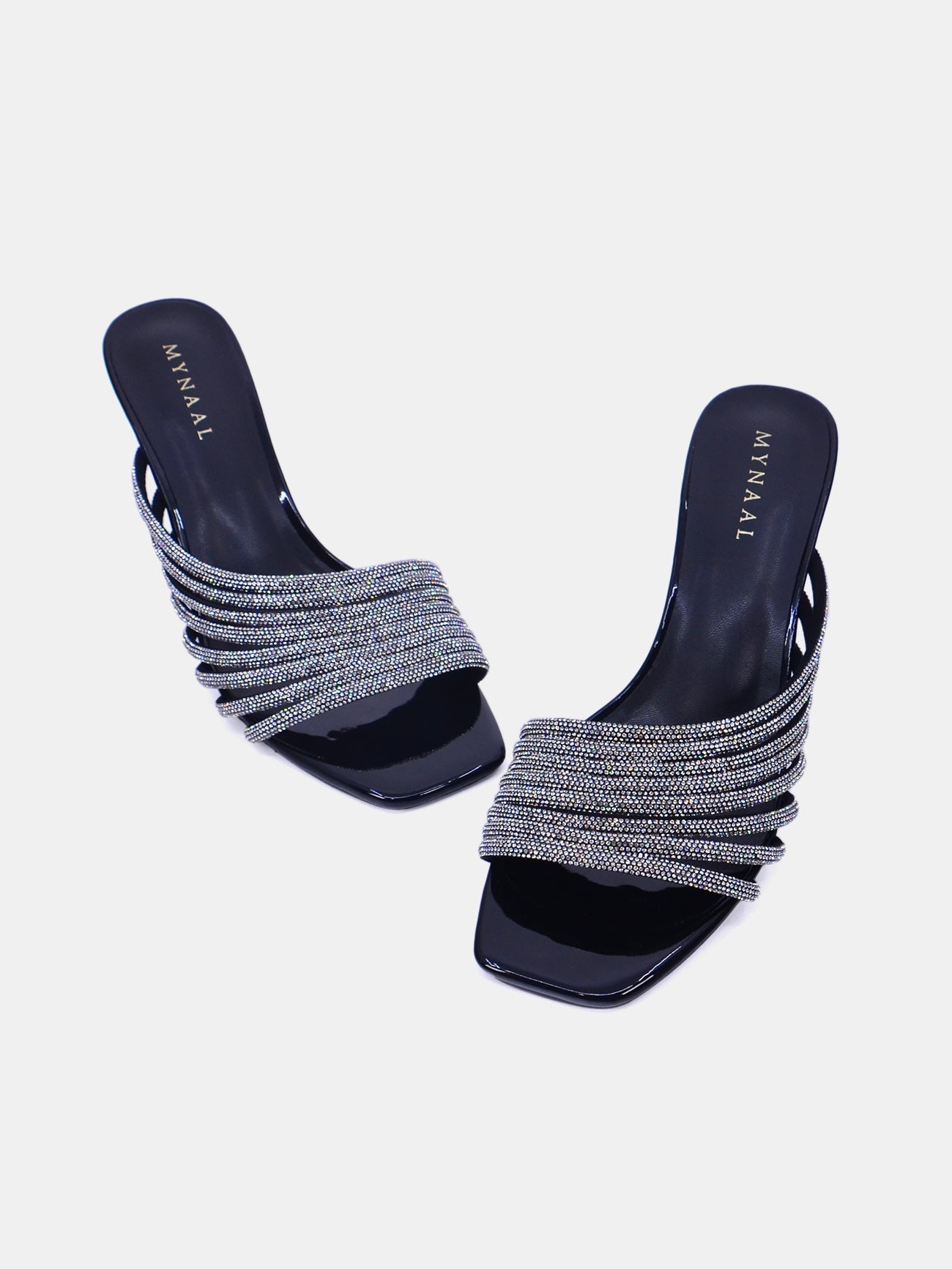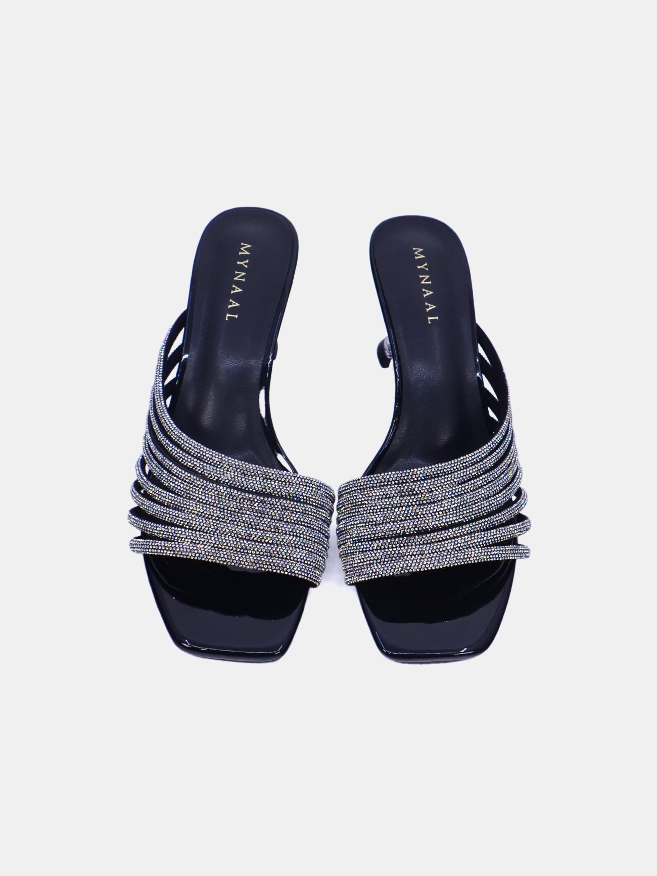 An elegant heeled sandal featuring multiple crystal-embellished straps and a sleek, sculpted heel. The open-toe design and cushioned footbed ensure a perfect balance of comfort and sophistication, making it an ideal choice for evening events and festive occasions.