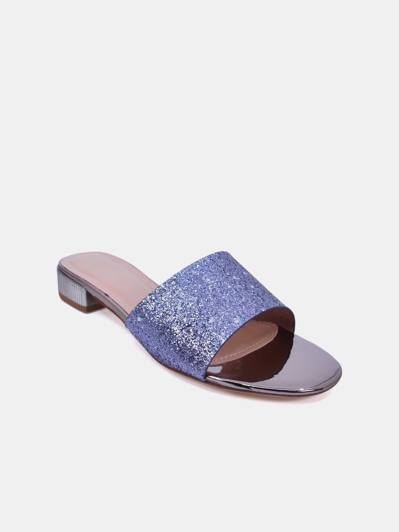 Make a statement in almond block heel sandals with shimmering details. The square toe adds a modern touch to your fashionable ensemble.