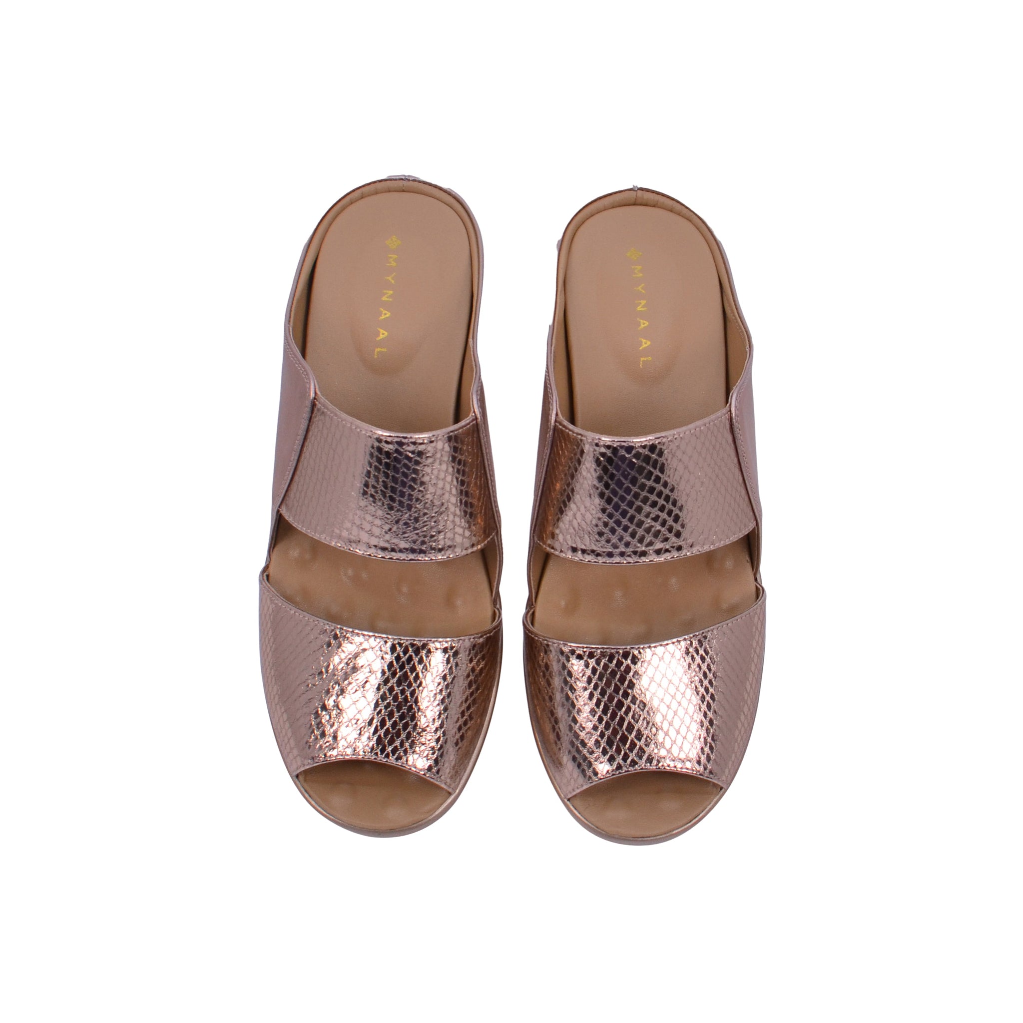 The Lazuli sandal features glossy textured crossover straps paired with a smooth, supportive wedge sole. Designed for all-day comfort with a modern, refined finish.
