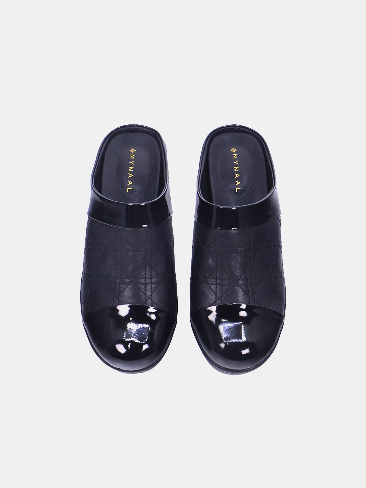 The Parcelle slip-on mule features a sleek quilted upper with patent accents for a refined look. A lightweight sole ensures stability and effortless all-day wear.