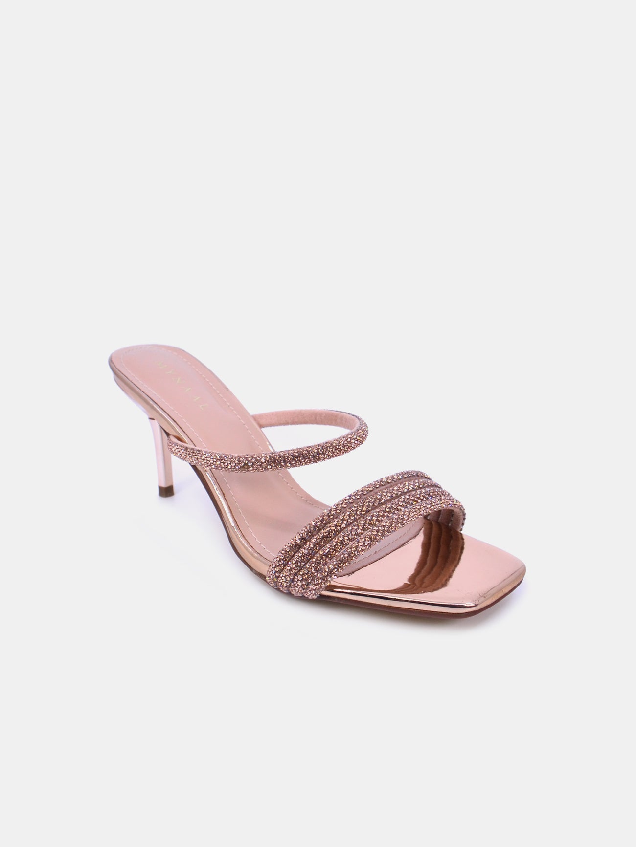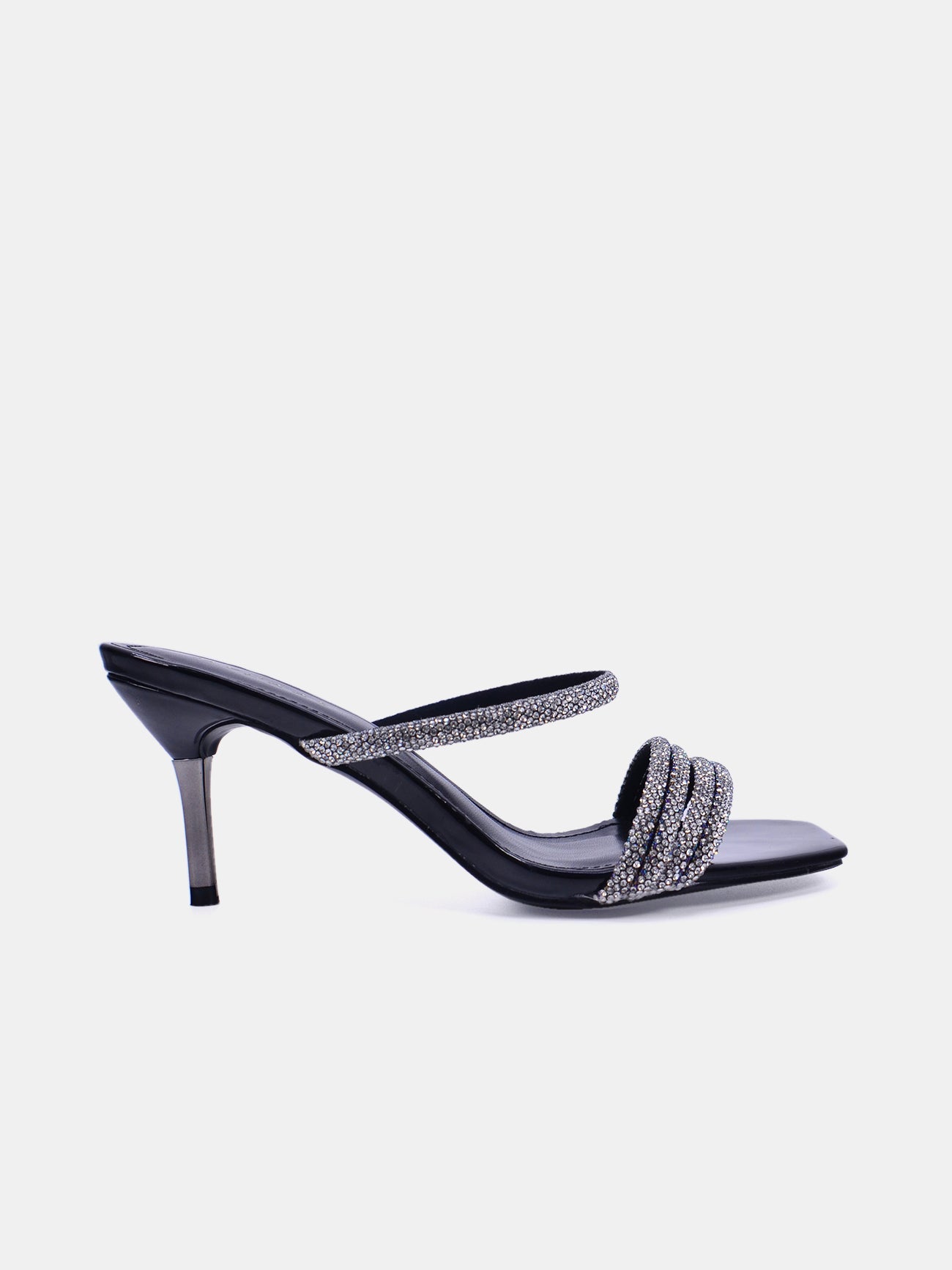 Step into sophistication with these square toe pencil heel sandals. The crystal embellishments add a touch of glamour, perfect for a chic look.