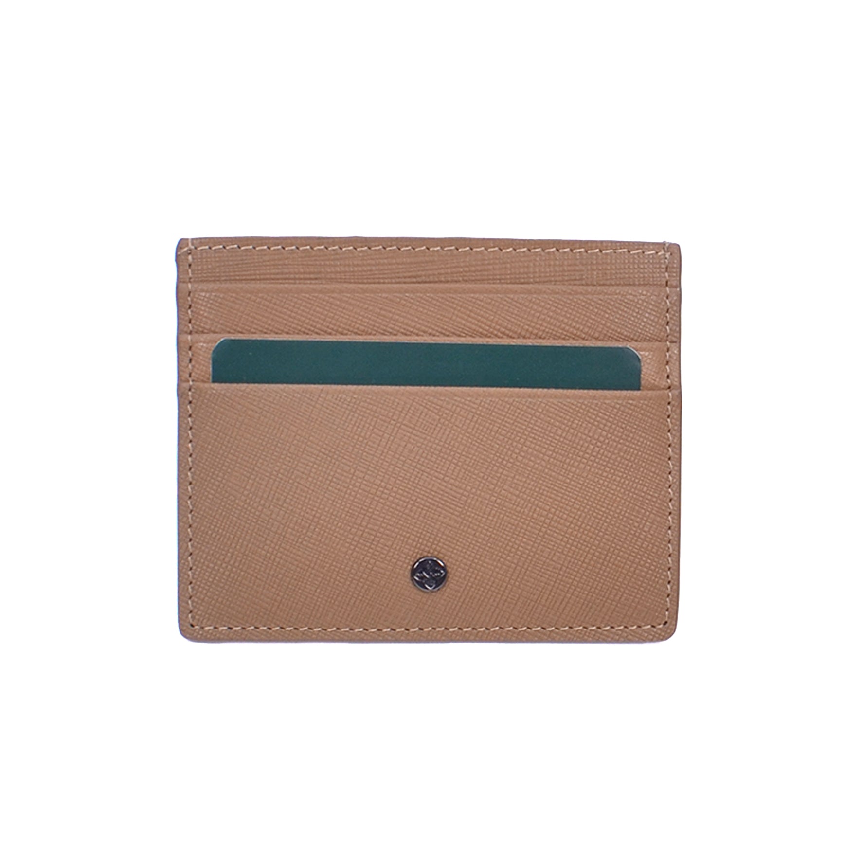 A minimalist card holder crafted from textured leather with a sleek, structured profile. Designed for everyday ease, it features multiple slots for cards and essentials while maintaining a refined, modern silhouette. Subtle logo detailing and RFID protection complete its sophisticated finish.