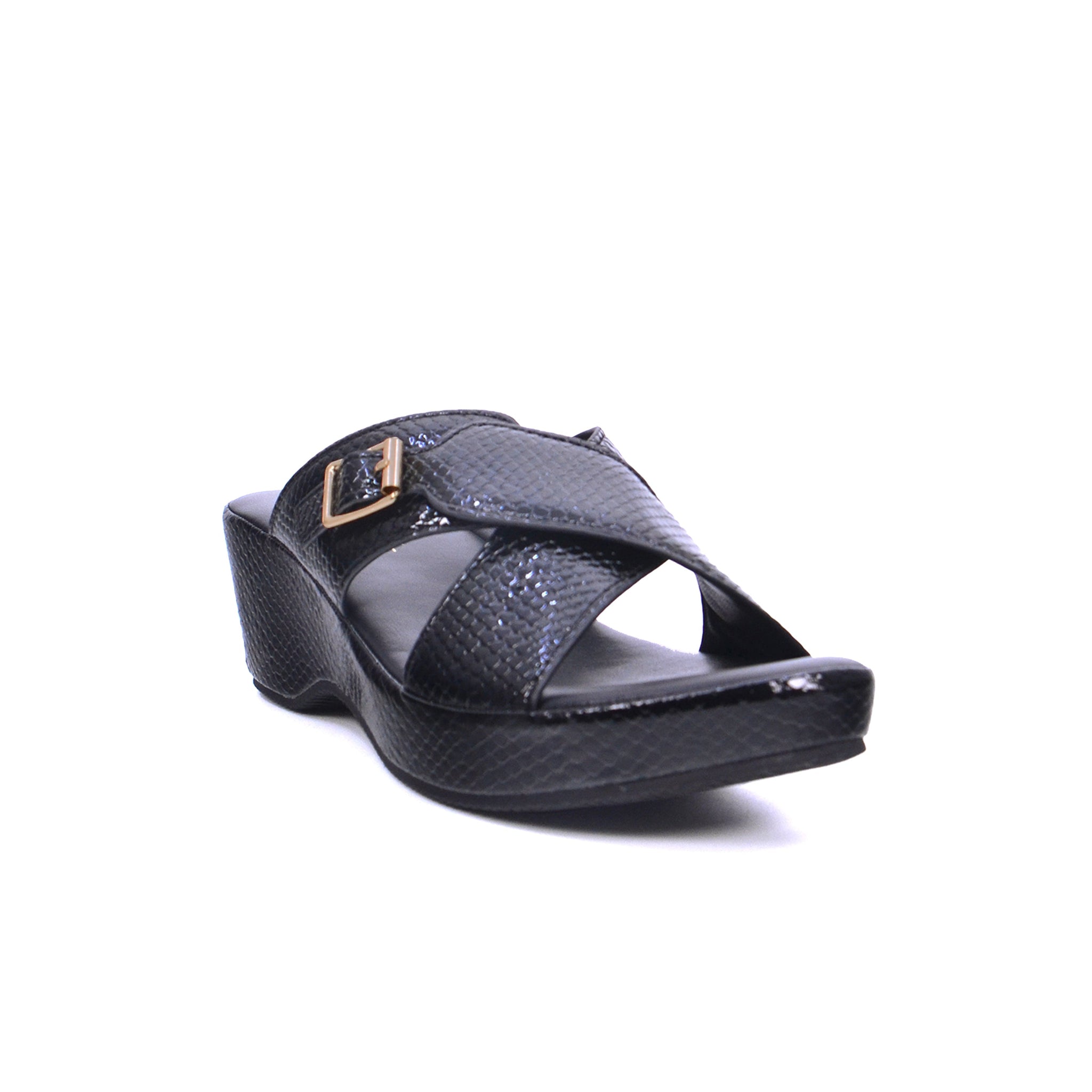 A sophisticated wedge sandal featuring criss-cross textured straps and refined buckle details. The elevated wedge heel and cushioned footbed deliver both comfort and modern allure, making this sandal ideal for special occasions and elevated everyday style.